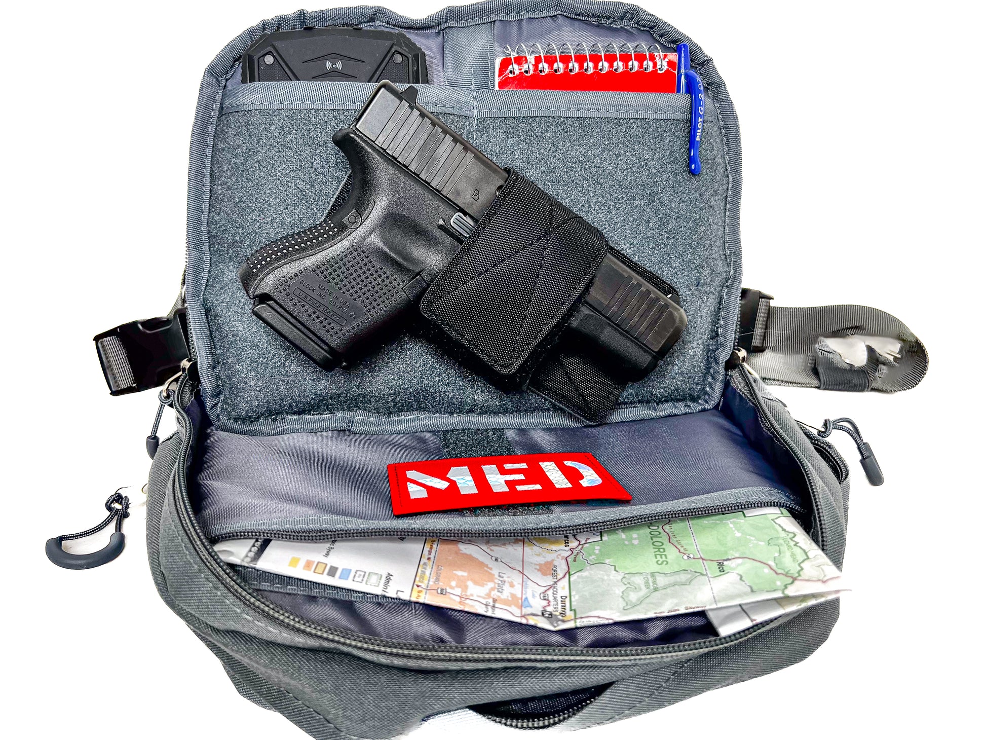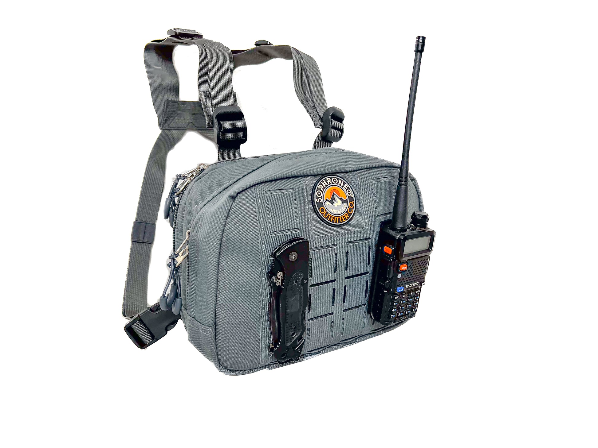 The back compartment includes a concealed carry option, adding versatility and security. The Endurance Chest Pack comes with three inserts: a triple pocket, a quad loop insert, and a pistol wrap. Its adaptability allows for integration with almost any hook and loop accessory on the market, making it fully customizable.